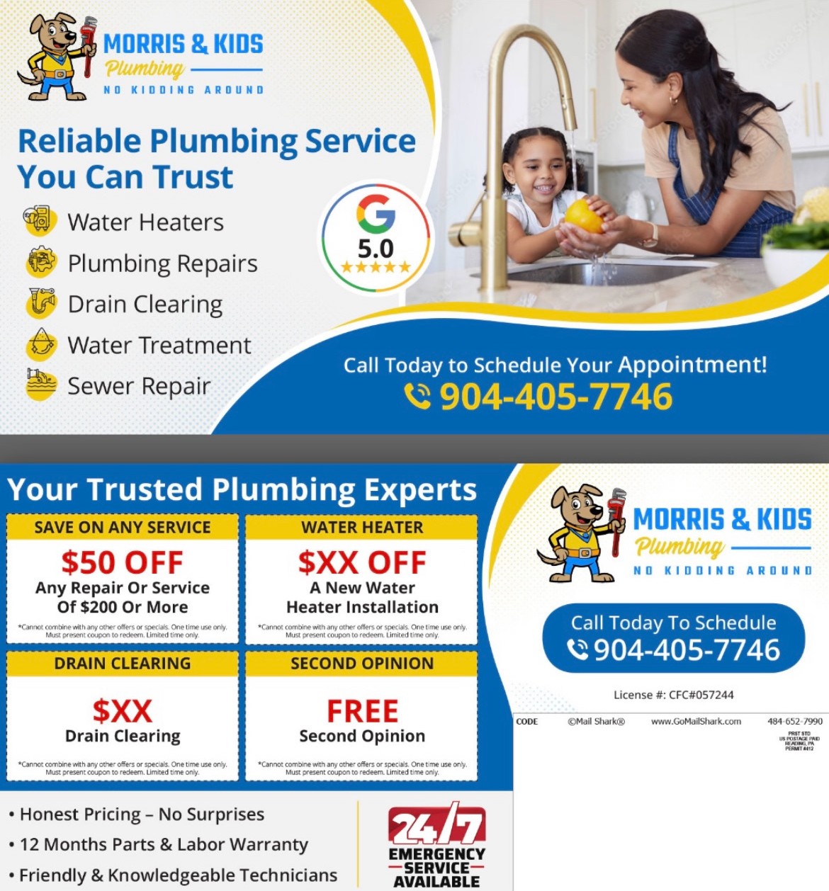Ready to schedule an appointment or need urgent plumbing assistance? Call Morris & Kids Plumbing at (904)405-7746 or fill out our online contact form. Let us handle all your